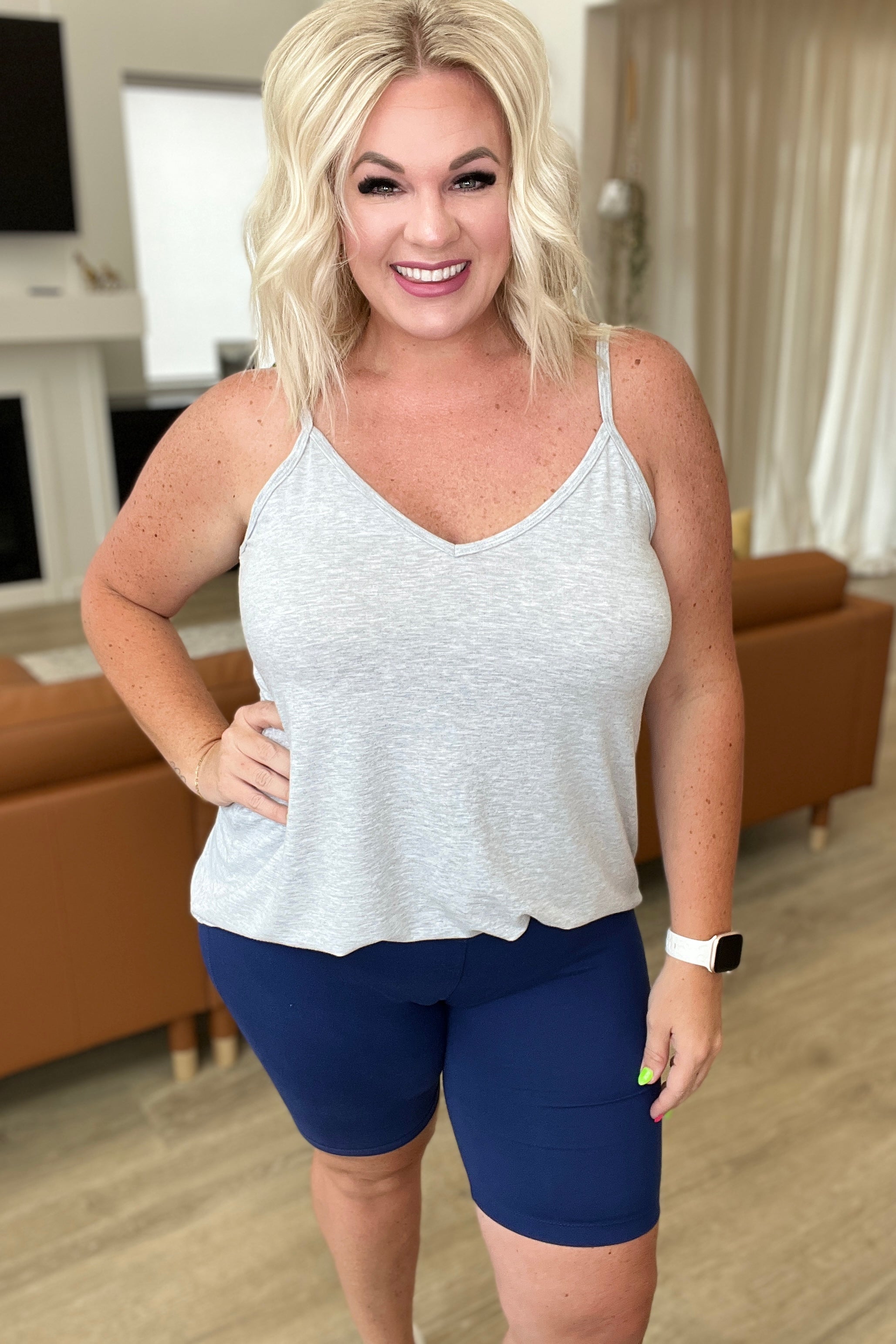 High Rise Wide Waistband Biker Shorts in Light Navy