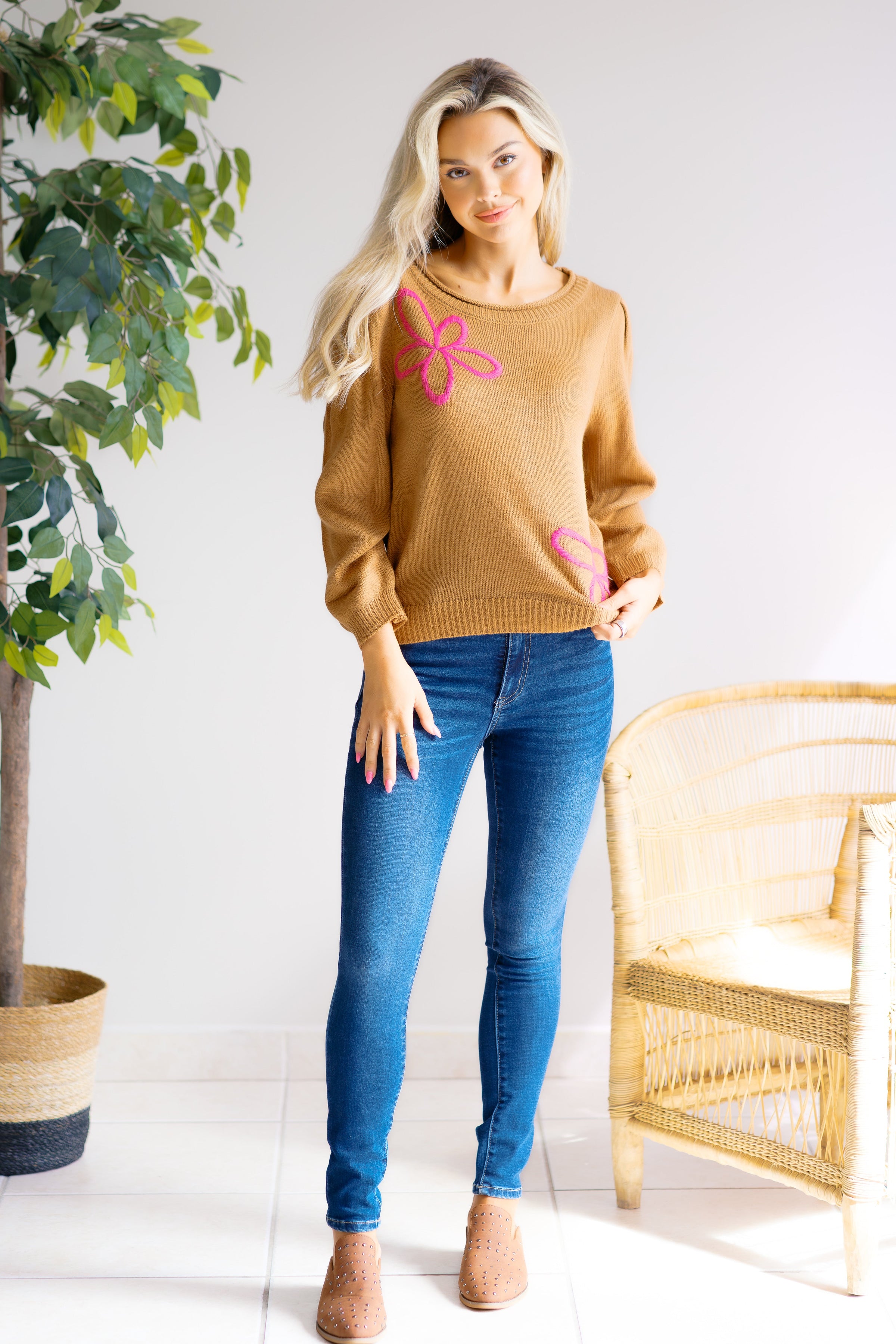 Embrace the charm of spring with the Falling for Florals Top. This fun Floral stitch top brings feminine touch to any outfit, perfect for brightening your day. Crafted for comfort and style, this top pairs effortlessly with jeans or skirts, making it a versatile addition to your wardrobe. Elevate your look and feel confident wherever you go with this must-have floral essential.