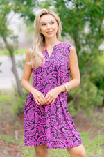 Introducing the Paisley Nights Dress! This playful Lizzy tank dress from Dear Scarlett features a flattering a-line bodice, mandarin collar, and pleated back detail. Plus, it's made from non-sheer, wrinkle-free knit material.