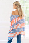 Sail into summer style with the Liberty Breeze Top! This playful, loose-fit top features a patriotic STAR N STRIPE USA FLAG design, paired with a trendy boat neck and side deep slits for a unique and breezy look. Show your pride in a fun and stylish way.