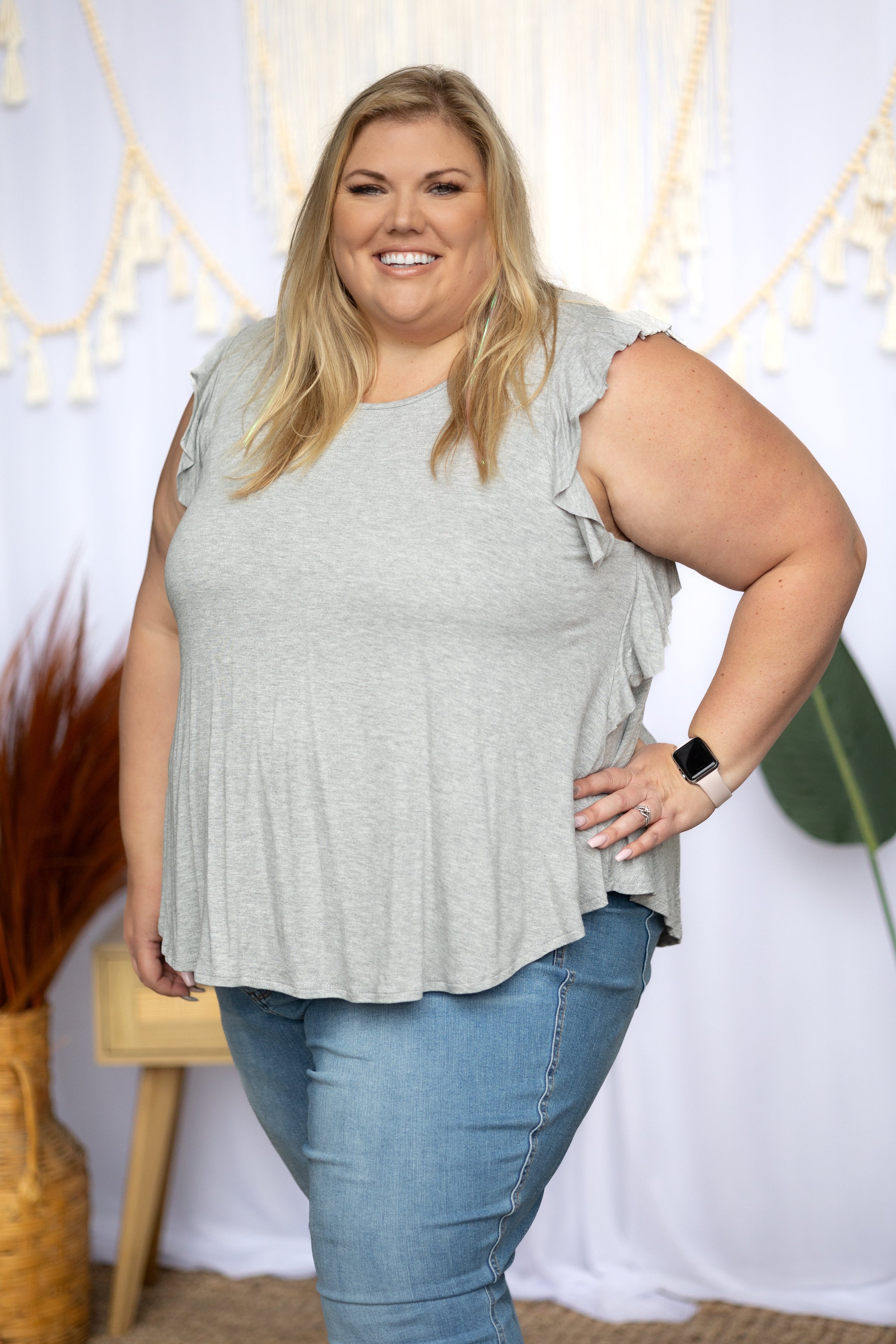 Lend your wardrobe a cool, breezy touch with the "Flutter By" top! Perfect for summer days, its lightweight design and relaxed fit keeps things comfy, while the ruffle sleeve and dolphin hem give it flair - perfect for making a statement without trying too hard. Ready to ruffle some feathers?