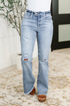 Elevate your denim game with our Marlena High Rise Flares! These playful jeans feature a comfy offset button tab waistband and light wash that pairs with everything. The slight distressing adds just enough edge, while shield pockets contour your curves perfectly. The raw cutoff hem and fit-and-flare silhouette create that coveted retro vibe you've been searching for!
