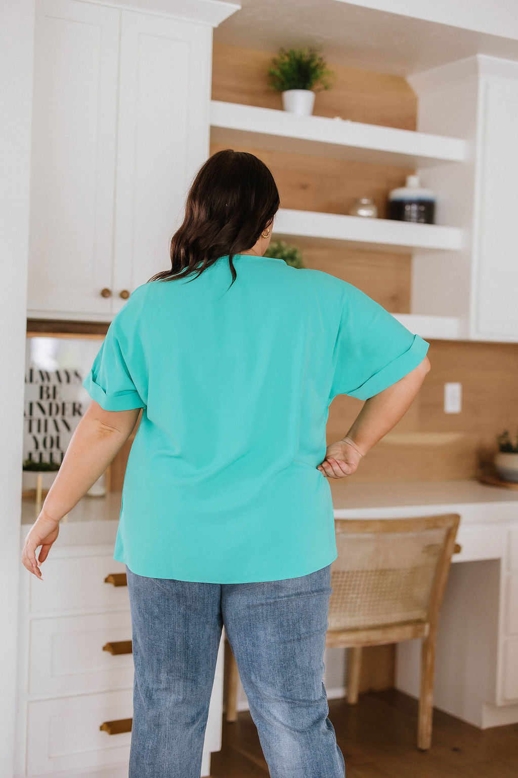 Welcome the warmer weather with the New and Noteworthy Top! Boasting a modern collar and dolman sleeves, this eye-catching top also includes a v-neckline and an easy, relaxed fit for all-day comfort. Its vibrant color adds a cheerful pop to your wardrobe. What are you waiting for?