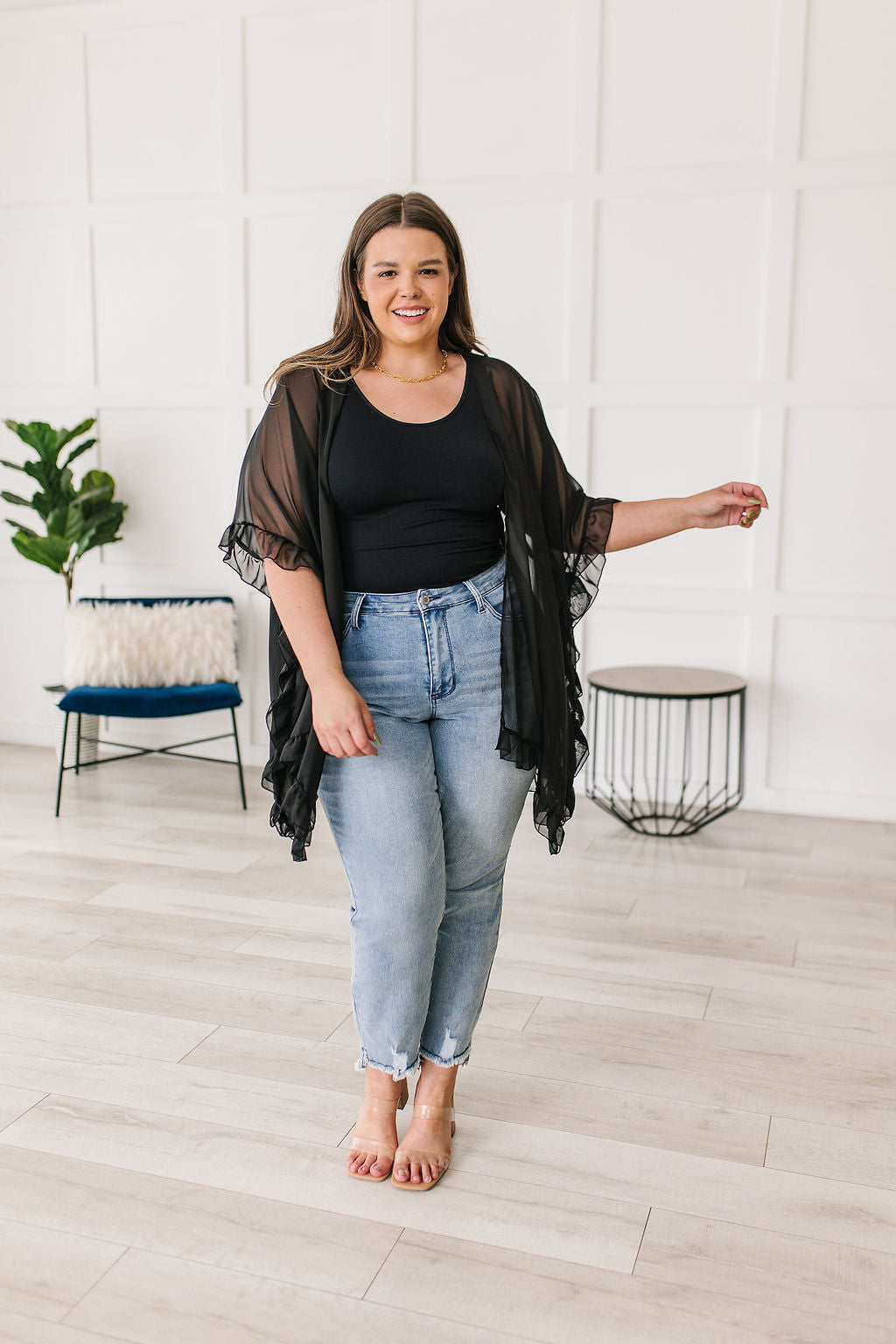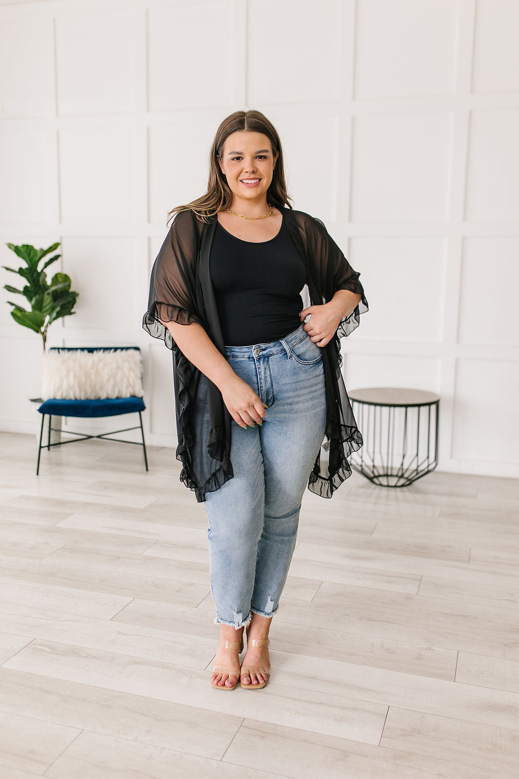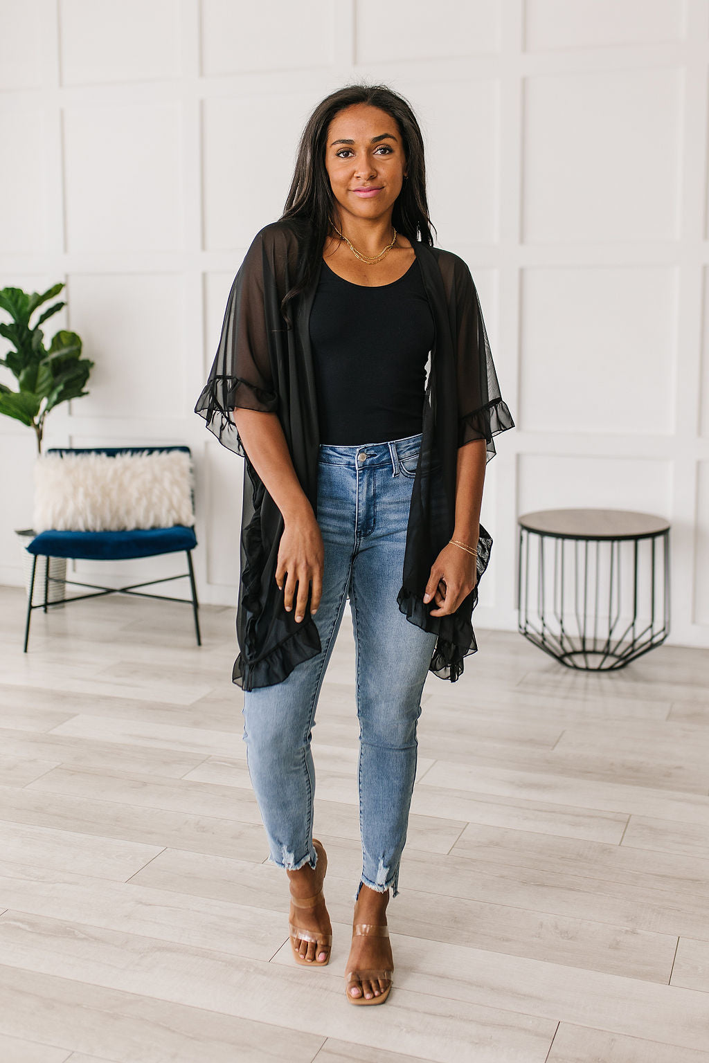 Give a chic upgrade to your look when you pair it with the Leave You Guessing Kimono! The details on this stunning piece will make you feel elegant and girly! We haven't stopped obsessing over the ruffle trim, drapey silhouette, elbow length kimono sleeves, and rounded hem.