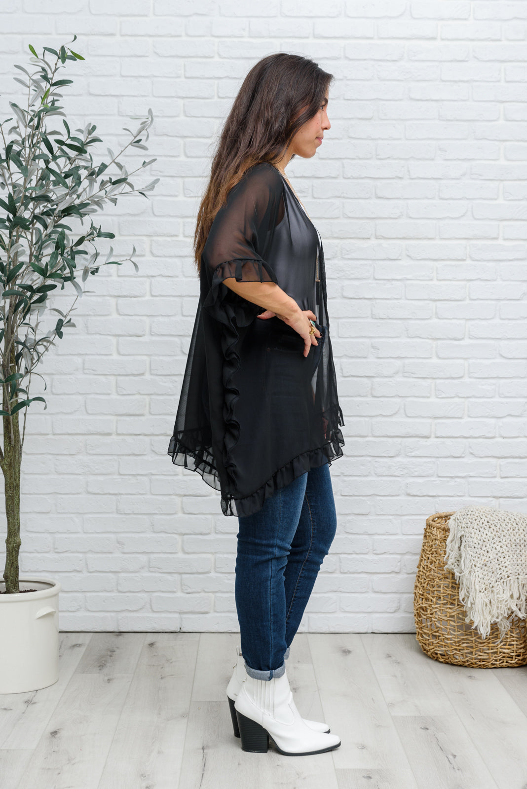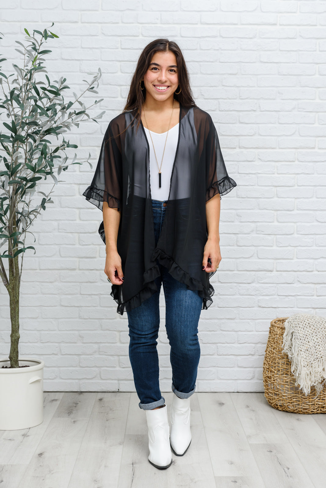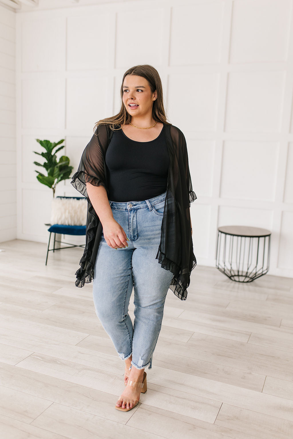 Give a chic upgrade to your look when you pair it with the Leave You Guessing Kimono! The details on this stunning piece will make you feel elegant and girly! We haven't stopped obsessing over the ruffle trim, drapey silhouette, elbow length kimono sleeves, and rounded hem.