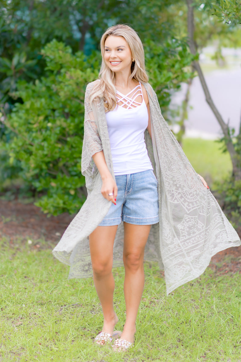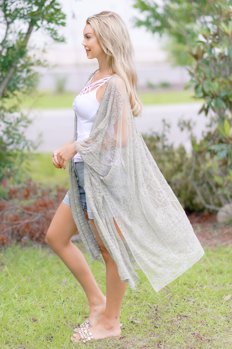 Unleash your inner bohemian with our Whispering Sage Kimono! This lightweight, sheer kimono boasts floral mandala embroidery for a festival-ready look. Choose from multiple colors and wear it as a chic cardigan or beach cover-up. The delicate lace and mesh design add a touch of elegance to any outfit. Dress it up or down - this versatile kimono is a must-have for any fashionista!