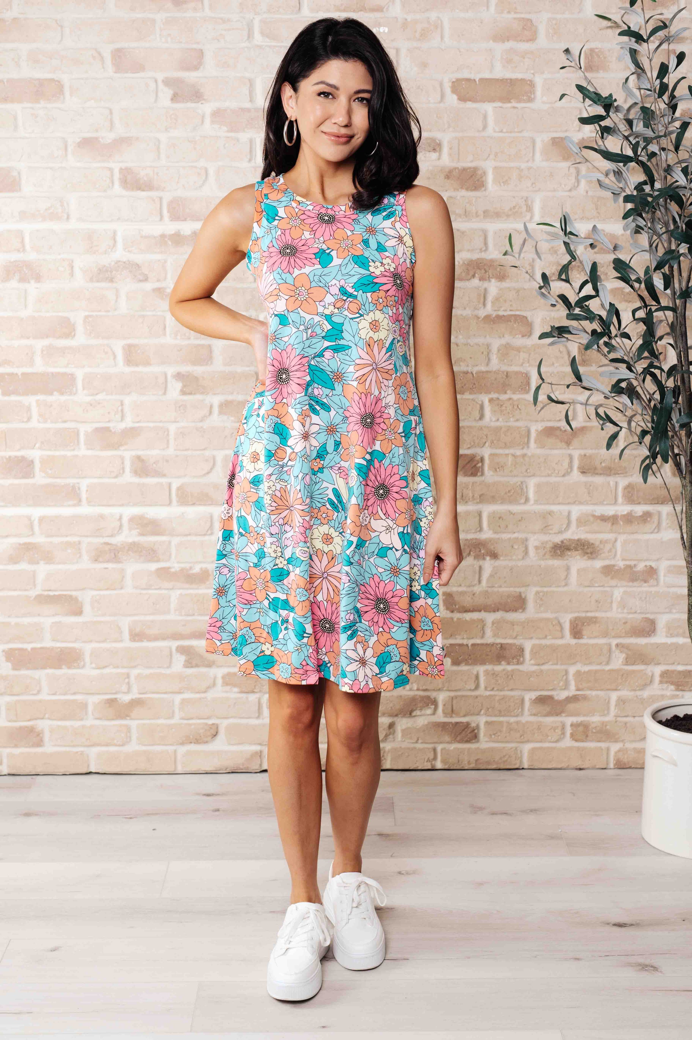 Stay comfortable and stylish with our Summer Garden Sleeveless Swing Dress. Made with soft, sweater knit fabric, this dress features a banded round neckline and sleeve cuffs for a flattering look. Perfect for any summer occasion.